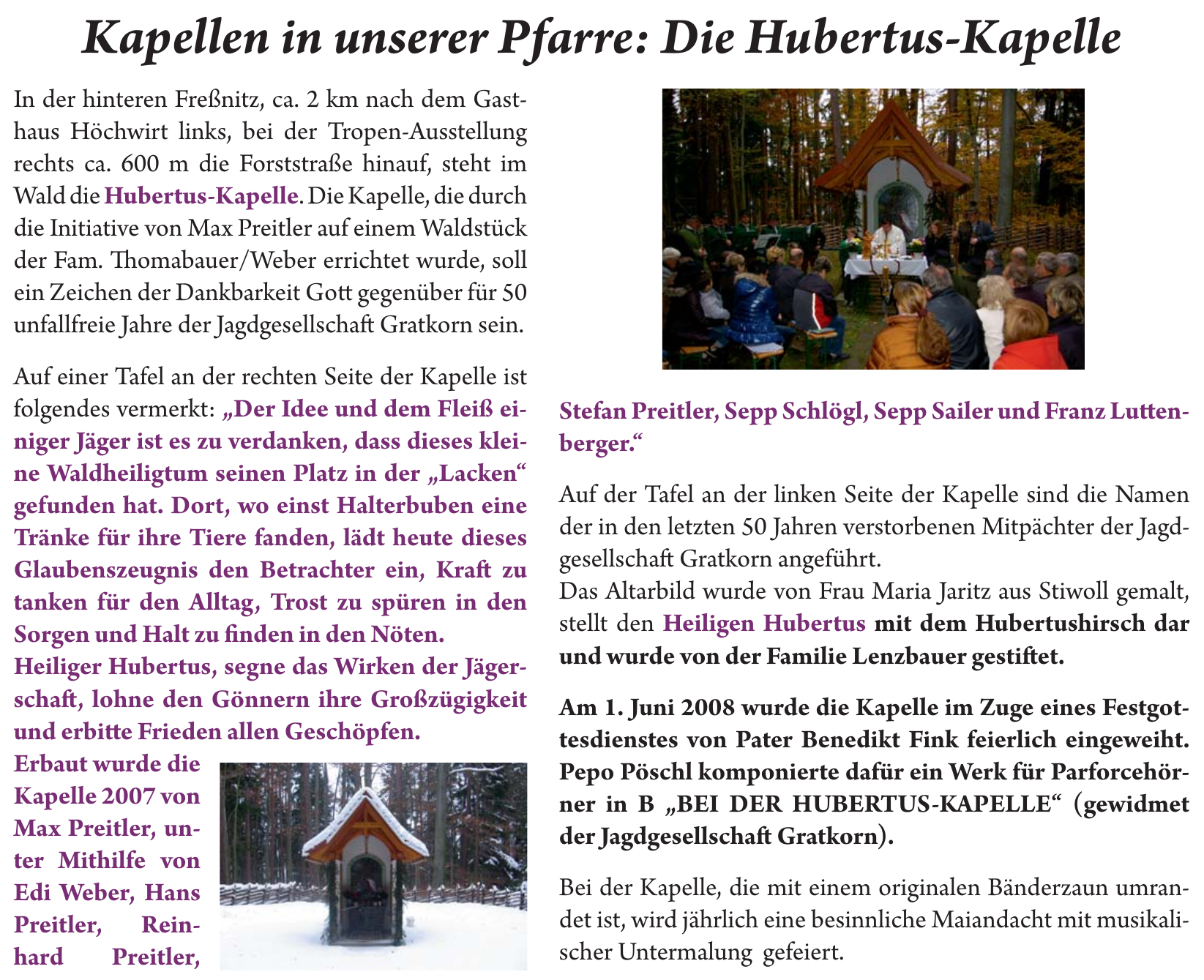 Die Kapelle wurde aus Dankbarkeit für 50 unfallfreie Jahre der Jagdgesellschaft Gratkorn errichtet.