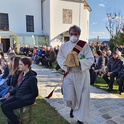Bei strahlendem Herbstwetter nahmen zu Allerheiligen viele Menschen an der Feier auf unserem Friedhof teil. Mit berührenden Texten vermittelten Christa und Diakon Franz Habith den FriedhofbesucherInnen die zentrale Hoffnung unseres christlichen Glaubens, dass unsere lieben Verstorbenen neues Leben bei Gott erwarten dürfen. Die Namen der im letzten Jahr Verstorbenen wurden vorgelesen. Musikalisch wurde die Feier von der MUZ festlich umrahmt. Nach der Gräbersegnung boten unsere Minis ihre selbst gebackenen Allerheiligenstriezerl an. Danke für die freiwilligen Spenden!